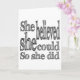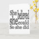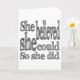 She believed she could so she did, inspirational text design with vintage look woodcut lettering, can have images, text or other elements added using the customise it feature. Great gift idea for a recent graduate, a breast cancer survivor, any strong woman who makes a great accomplishment. White background on the back of this item can be customised to another colour by choosing "customise it" and then editing the background colour. A great tool tip for personalising this product into your own custom creation.