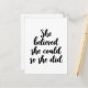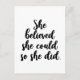 She believed she could so she did, a great inspirational feminist quote to remember. Fully customisable colour.