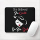 Motivational mouse pad that features the quote "She Believed She Could So She Did".