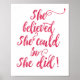 Pretty watercolor script writing in pink with a message of inspiration for women of achievement.