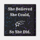 "She Believed She Could So She Did" Inspiring Women's Strength Quote. Inspirational girly magnet for the fridge, school lockers, s/s drawers etc. Black and white galaxy design.