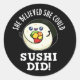 She Believed She Could Sushi Did Food Pun Dark BG Classic Round Sticker