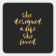She Designed a Life She Loved with faux gold foil Square Sticker