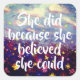 Motivational sticker featuring unique firefly landscape art. "She did because she believed she could."