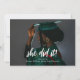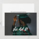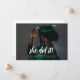 Celebrate her big achievement with this elegant “She Did It!” graduation announcement photo card. Featuring a modern script font and a stylish cap & gown portrait, this design is perfect for honouring a proud Class of 2026 graduate. Ideal for daughters, sisters, or friends, this customisable card allows you to add your own name, school, degree, and personal message. A beautiful and timeless way to share her success with loved ones.