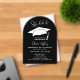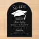 She Did It Elegant Graduation Acrylic Invitations. Scripted words "She did it" with silhouette of a graduation cap in whte set against black background. Calligraphy script wording let's everyone know that she did it. Invite friends and family to an chic black and white graduation party celebration! Templates are easy to edit with all the grad party details for celebrating your graduate.