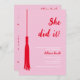 Celebrate an important milestone with our trendy and chic graduation party invitation! Featuring a feminine red and pink design, this invitation boasts a "She Did It!" text and a grad tassel, making it the perfect way to commemorate hard work and dedication. Add a personal touch by uploading a photo of the graduate, and customise the text to fit your event details. Whether it's a high school, college, or graduate school graduation, this invitation is sure to impress. Order yours today and get ready to party!