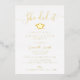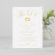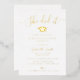 A simple graduation party invitation card with gold and white colors. The text details can be personalized.