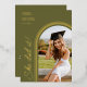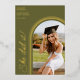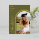 Celebrate your graduate's amazing accomplishment with this elegant She Did It arch photo graduation announcement. This stylish design features a modern arch with a customisable photo placeholder, perfect for showcasing your grad's senior portrait. The Olive Green colour adds a touch of sophistication. Personalise it with your graduate's name, school, class year, and a special message. Printed on high-quality card stock with real foil accents for a touch of luxury. Make your graduate shine with this beautiful and unique announcement!