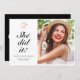 celebrate your graduation with this simple script photo graduation card.This graduation card design has announcement at the front and grad party invitation at the back. You can change the photo and other details by clicking on the customise link.