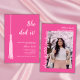 She Did It Trendy Chic Hot Pink Photo Graduation Invitation