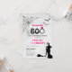 She Found Her Boo Halloween Bridal Shower Invitation with witch flying on broomstick, cobweb and bats. Fun Halloween theme bridal shower invites.