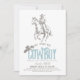 This retro and chic "she found her cowboy" bridal shower invitation features a cowboy on a horse and cowboy hat on a white background. The reverse side features a pale blue background with cactus patterns. Personalize for your needs. You can find matching products at my store.