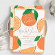 This cute and modern "She found her Cutie" bridal shower invitation features a blush pink background surrounded by oranges and orange slices. The reverse side features a light orange background with orange patterns. Personalise it for your needs. You can find matching products at my store.