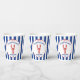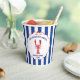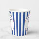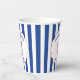 Give your Bridal shower a nautical touch with these personalized paper cups. They feature my hand drawn realistic style illustration of a lobster in red with your custom text in blue. All the text is ready for your personalized touch including the "She found her lobster" slogan at the top. The text and graphic are set inside of a round scalloped frame with a ribbon look and a red bow at the top that is set against a blue and white striped background. The text and graphic design appears on both sides of the cup.