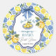 An elegant Bridal Shower design with blue tile background and lemons.