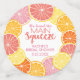 Whimsical citrus fruit in pinks, coral, orange and ruby red grapefruit colours. The hand drawn citrus slices include a watercolor painted texture for a juicy addition to a colourful wedding shower decoration.