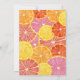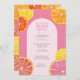 Whimsical citrus fruit in pinks, coral, orange and ruby red grapefruit colours. The hand drawn citrus slices include a watercolor painted texture for a juicy addition to a colourful wedding shower invitation.