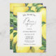 Watercolor lemon citrus theme bridal shower card featuring watercolor illustration of lemons pattern and greenery branch. Elegant calligraphic handwriting, which is perfect for spring, summer or autumn weddings.
