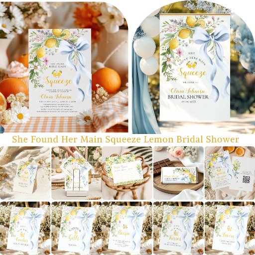 Celebrate love with this charming “She Found Her Main Squeeze” bridal shower invitation, designed with hand-painted watercolor lemons, soft greenery, and romantic florals. A graceful blue bow adds a refined touch, while the coordinated striped lemon pattern on the back creates a polished, boutique feel. Perfect for summer, garden, Mediterranean, lemon, or citrus-themed bridal showers, this invitation blends sweetness with sophistication. Ideal for outdoor gatherings, brunch celebrations, or elegant daytime showers, it sets a joyful tone from the very first impression. Fully customizable to personalize names, dates, and details, this invitation is a beautiful choice for brides who love fresh, feminine, and timeless designs.