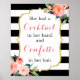 She had cocktail in her hand confetti in her hair Sign Poster.