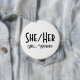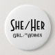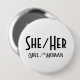 Express your true self in chic, classic and modern style with the SHE/HER GIRL/WOMAN Round White Button! Easily personalise by adding an image or changing the text and background colours. And create your own personalised button and stylish customised gifts for any occasion!