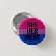 she/her/hers pronouns bisexual pride flag 3 cm round badge