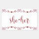She Her in Red Fancy Doodles Rectangular Sticker