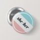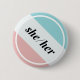 Gender Pronoun She/Her Round Button, pink & blue