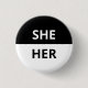 She/Her Pronoun Black & White Badge