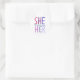 SHE / HER Pronouns Purple Handlettering Set of Classic Round Sticker