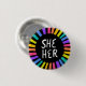 SHE / HER Pronouns Rainbow Handlettered Pride 3 Cm Round Badge