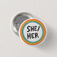 SHE/HER Pronouns Rainbow Soft Circle Button