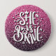 SHE IS BRAVE CUSTOM GLITTER TYPOGRAPHY 10 CM ROUND BADGE