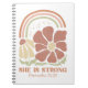 This design features a faith-inspired message with the verse **“She is Strong – Proverbs 31:25.”** It showcases two large, hand-drawn flowers beneath a soft, pastel rainbow, accented with scattered dots. The earthy tones and organic shapes give it a warm, uplifting, and empowering feel, celebrating strength, resilience, and beauty.