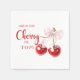 Complete your bridal shower tablescape with our She Is the Cherry on Top Matching Napkins! These charming napkins feature a playful watercolor design of two bright red cherries tied together with a soft pink bow, along with the fun phrase “She is the Cherry on Top!”