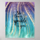 She Leaves A Little Sparkle Wherever She Goes luxury watercolor brushstrokes of purple and turquoise shades of green and blue with sparkly glitter highlights. A special thoughtful gift for your BFF, daughter, girlfriend, wife, mum, grandma or any amazing woman in your life. You can click the 'edit design' button to open the design and then select 'text' to personalise with your own name or words. If you need any help please select the contact button and I will be happy to help.