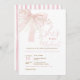 featuring a soft blush pink bow, delicate pearls, and hand-lettered script reading She’s Tying the Knot.