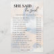 She said He said Bridal Shower Game Cloud Nine Flyer