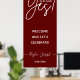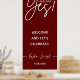 Simple calligraphic Engagement Party sign with 'She said Yes!' lettering. Different background color options available: Burgundy, Emerald, Navy blue and Rust. Names and Date of event are totally editable.