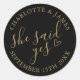 She Said Yes Engagement Party Black And Gold Classic Round Sticker