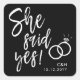 She Said Yes! | Engagement Party Script Black Square Sticker