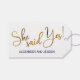 A modern gold script text with She Said Yes in a minimalistic style with your custom names below in a simple modern font.