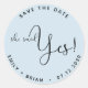 Seal your envelopes with style. Stylish "she said yes" script is in handwritten font encircled with your personal information. Customise this sticker to make it your own and as you can change background colour and fonts.