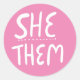 SHE / THEM Pronouns Pink Handlettering Set of Classic Round Sticker