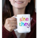 If your preferred pronouns are She / They this mug will make it easier for other people to address you.