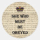 She who must be obeyed classic round sticker