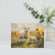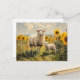 A heartwarming pastoral scene featuring a fluffy sheep and her lamb standing peacefully in a vibrant field of golden sunflowers.