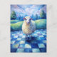 Sheep Blue Checkered Checking on Friend Postcard