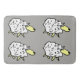 Fun sheep design with a pattern of cartoon style sheep on a grey background.